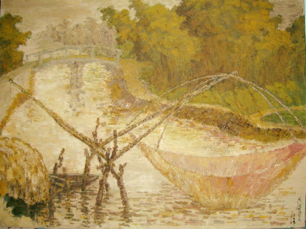 Tranh sơn dầu : Sông Lắng Sa ( Thuận Vi ) của họa sĩ Nguyễn Đình Bầu